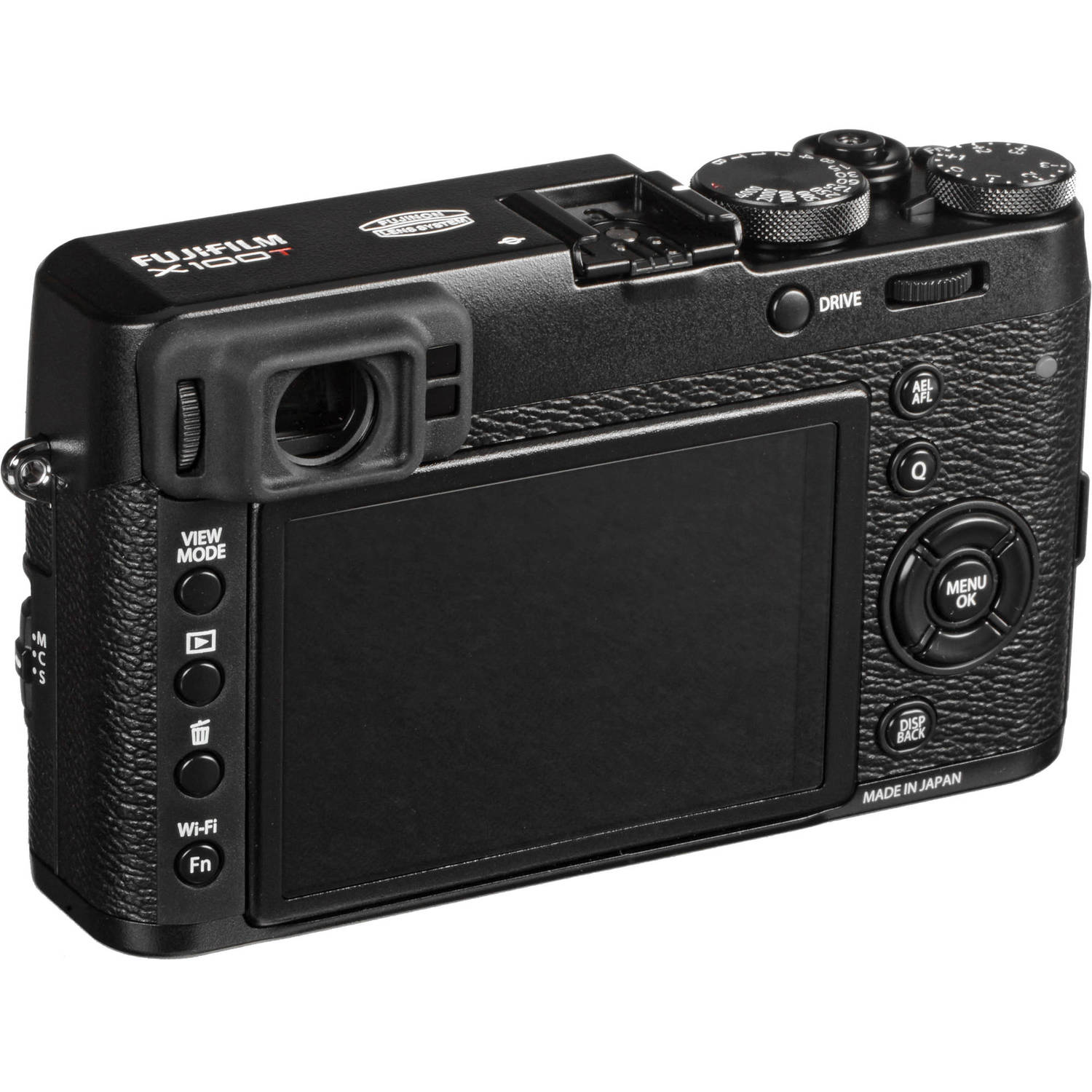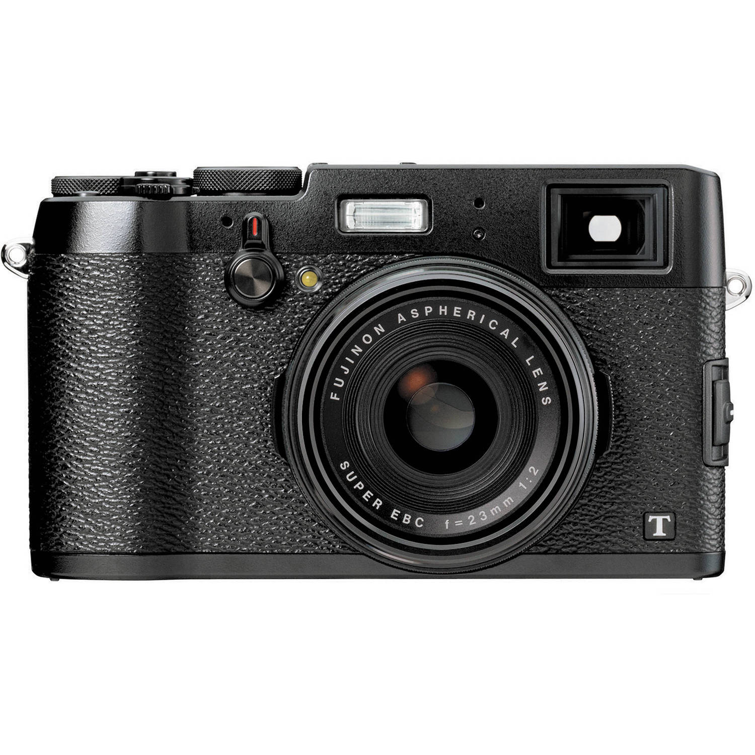 The Fujifilm X100T is a 16.3-megapixel compact camera featuring an APS-C X-Trans CMOS II sensor that delivers sharp, detailed images with an expandable ISO range of 100 to 51,200. The camera includes a fixed 23mm f/2 Fujinon lens (35mm equivalent), which incorporates a three-stop built-in neutral density filter for greater control over exposure and aperture. An Advanced Hybrid Viewfinder combines optical and electronic viewing methods with an electronic rangefinder and digital focusing aids including split-image and focus peaking for precise manual focus. The camera is capable of continuous shooting at 6 fps, full HD video recording at up to 60 fps, and features multiple Fujifilm Film Simulation modes that emulate the look of classic film stocks. A magnesium alloy body with dial-based controls, built-in Wi-Fi connectivity, and an electronic shutter capable of speeds up to 1/32,000 second complete this versatile rangefinder-style digital camera.