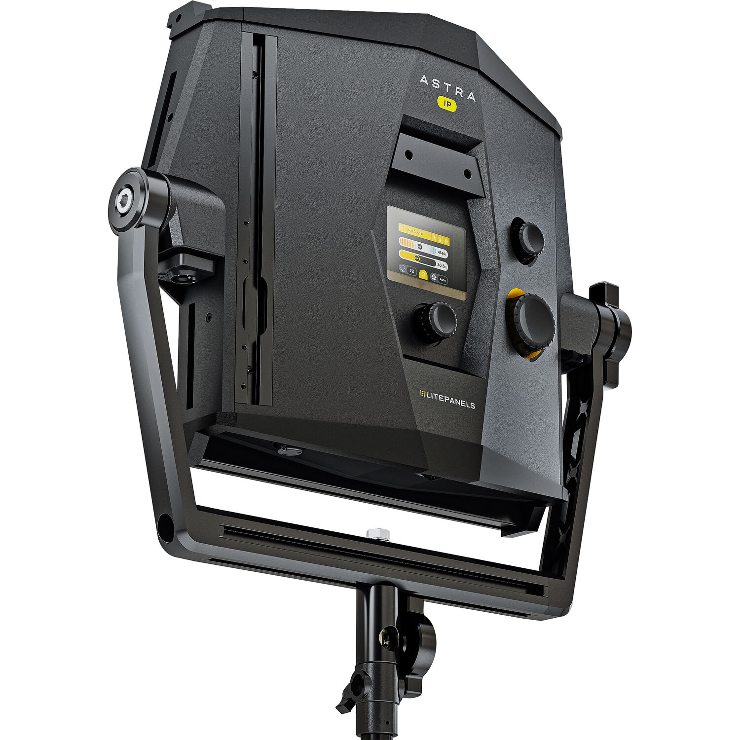 The Litepanels Astra IP 1x1 Bi-Color LED Light Panel is a compact, portable lighting solution designed for both studio and on-location film and television production. Weighing 9.7 pounds with dimensions of 17 x 16.8 x 4.3 inches, the light delivers 27,000 lux output at 3.3 feet (5600K) and features continuously adjustable color temperature from 2700 to 6500K. With a CRI and TLCI rating of 95, the panel produces color-accurate light suitable for professional cinematography.