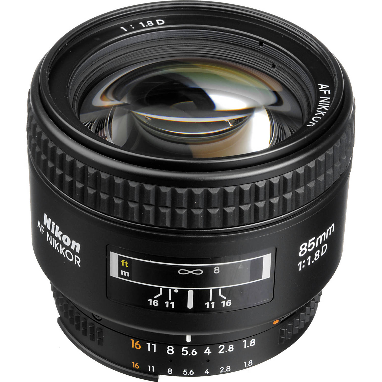 The Nikon AF Nikkor 85mm f/1.8D is a fast telephoto lens designed for portrait, indoor sports, and stage photography. This lens features a bright f/1.8 maximum aperture with a rear focus system that enables fast and accurate autofocus, along with Super Integrated Lens Coating that minimizes flare and ghosting. The optical design comprises six elements in six groups, delivering sharp and detailed images across its aperture range of f/1.8 to f/16.