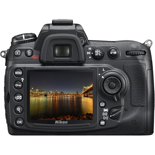 The magnesium-alloy body is weather-resistant and built to withstand professional use, with a shutter rated for 150,000 cycles. Additional features include dual memory card slots for CompactFlash and SD/SDHC cards, a 3-inch 921,000-dot LCD monitor for accurate image review and Live View shooting, and comprehensive in-camera editing tools. The camera delivers excellent battery performance with up to 950 shots per charge using an EN-EL3e battery.