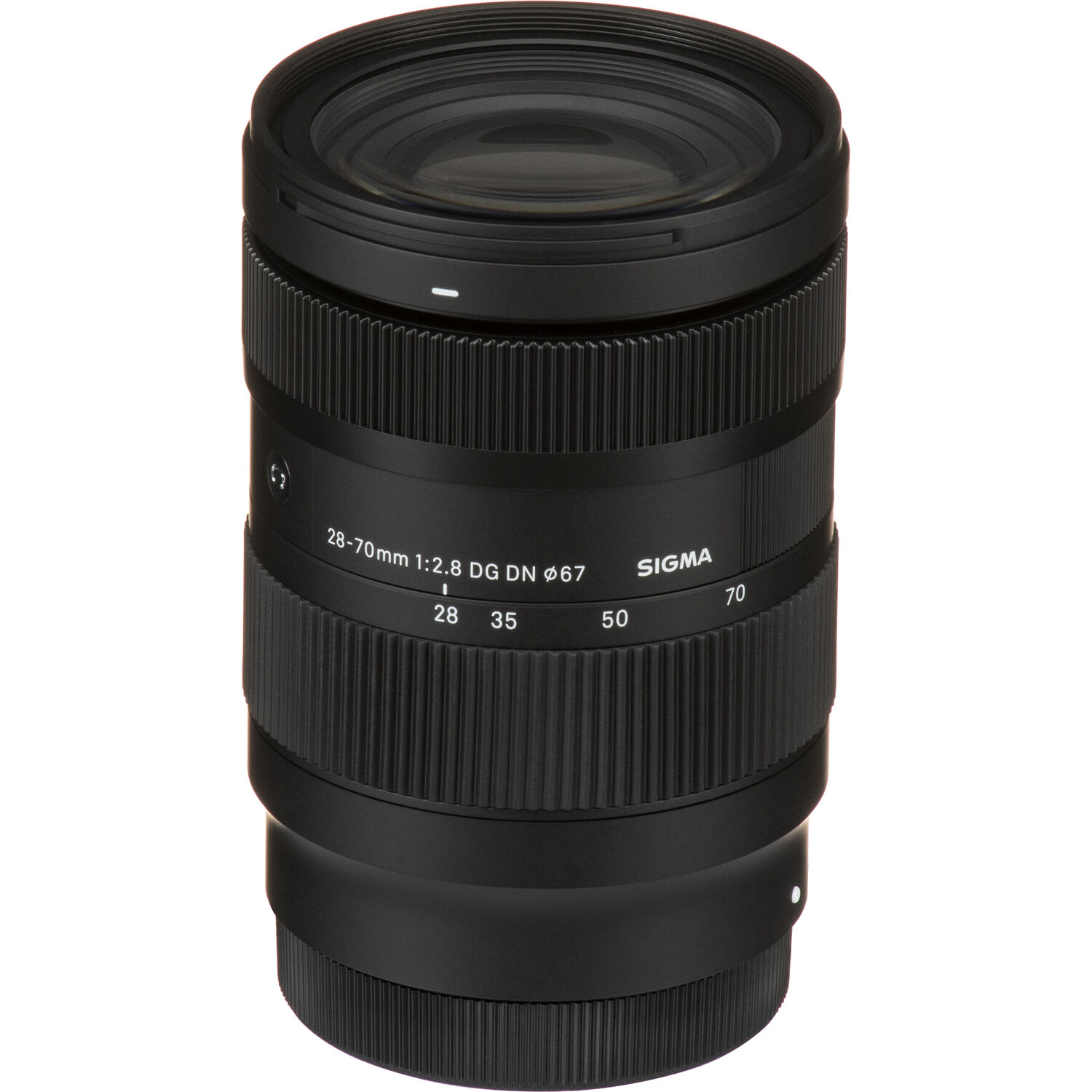 The Sigma 28-70mm f/2.8 DG DN Contemporary Lens is a standard zoom designed for full-frame L-mount mirrorless cameras, offering a versatile focal range from wide-angle to short telephoto with a constant f/2.8 maximum aperture. The optical design incorporates two FLD and two SLD low-dispersion elements along with three aspherical elements to minimize chromatic aberrations, spherical aberrations, and distortion while delivering high sharpness and color accuracy. At only 470 grams, this lightweight lens features a quiet stepping motor autofocus system with a single focusing element, making it ideal for video work and compatible with gimbals and other stabilizing accessories.