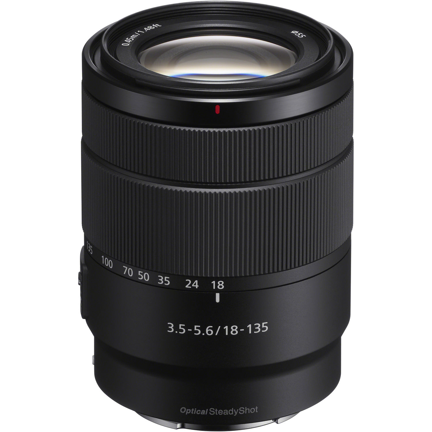 The Sony E 18-135mm f/3.5-5.6 OSS is a versatile zoom lens designed for Sony APS-C-format E-mount mirrorless cameras, providing a 27-202.5mm equivalent focal range suitable for wide-angle to medium telephoto photography. The lens features optical image stabilization that reduces camera shake during handheld shooting and combines well with compatible camera bodies equipped with sensor-shift stabilization for enhanced blur control. Its optical design includes two extra-low dispersion elements and one aspherical element to minimize chromatic aberration and distortion while maintaining sharp image quality.