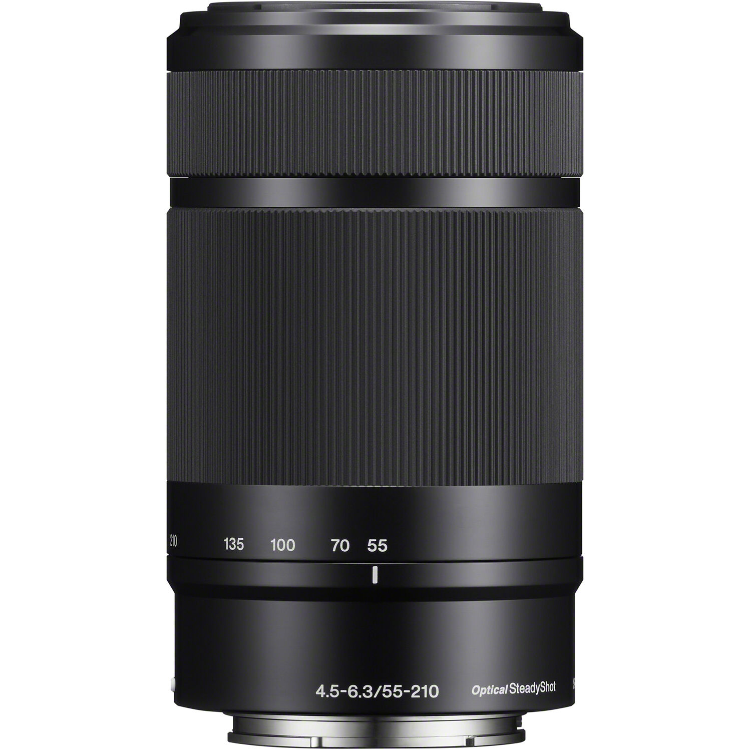 The Sony E 55-210mm f/4.5-6.3 OSS Lens is a telephoto zoom designed for APS-C-format E-mount cameras, offering an equivalent focal length range of 82.5-315mm that suits portrait, sports, and landscape photography. The lens features two extra-low dispersion glass elements and two aspherical elements that minimize chromatic aberration and monochromatic aberrations for improved image clarity. An internal autofocus mechanism provides responsive focus performance with a minimum focus distance of 3.3 feet, while optical image stabilization helps reduce camera shake during handheld shooting.
